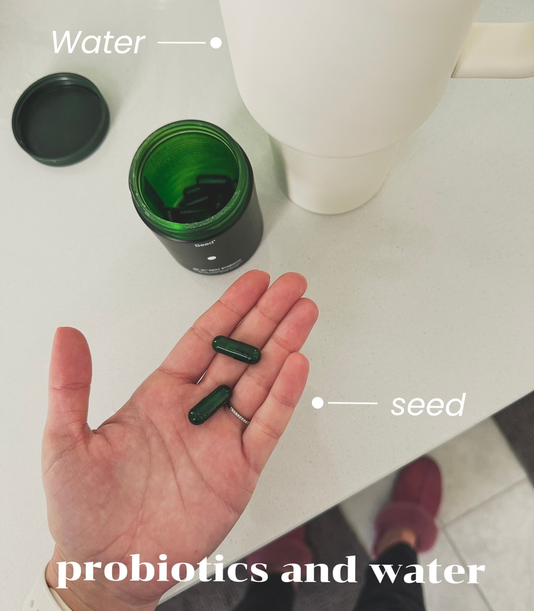 Seed is a probiotic and prebiotic combined (called a synbiotic), clinically validated, 24 strains, specifically designed to reduce bloating and gas and support whole body health. It’s the one I actually recommend because the science is legit.