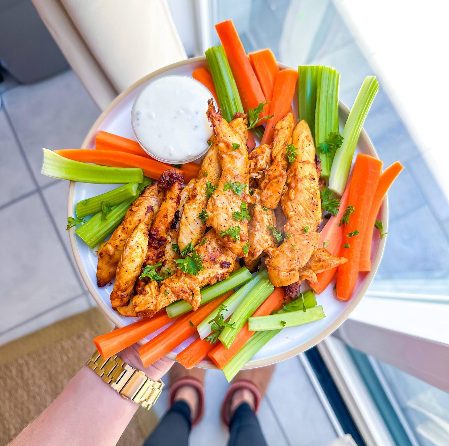 In this weeks newsletter, I get super vulnerable about why I am experimenting with going dairy, gluten & sugar free. Also sharing my high protein & low carb buffalo chicken tenders meal prep recipe, along with my current favorite air fryer. Finally sharing a gluten free bruschetta toast recipe you’ll love if you’re doing this challenge with me! Finally, you’ll get a free download of my Trader Joe’s eCookbook.