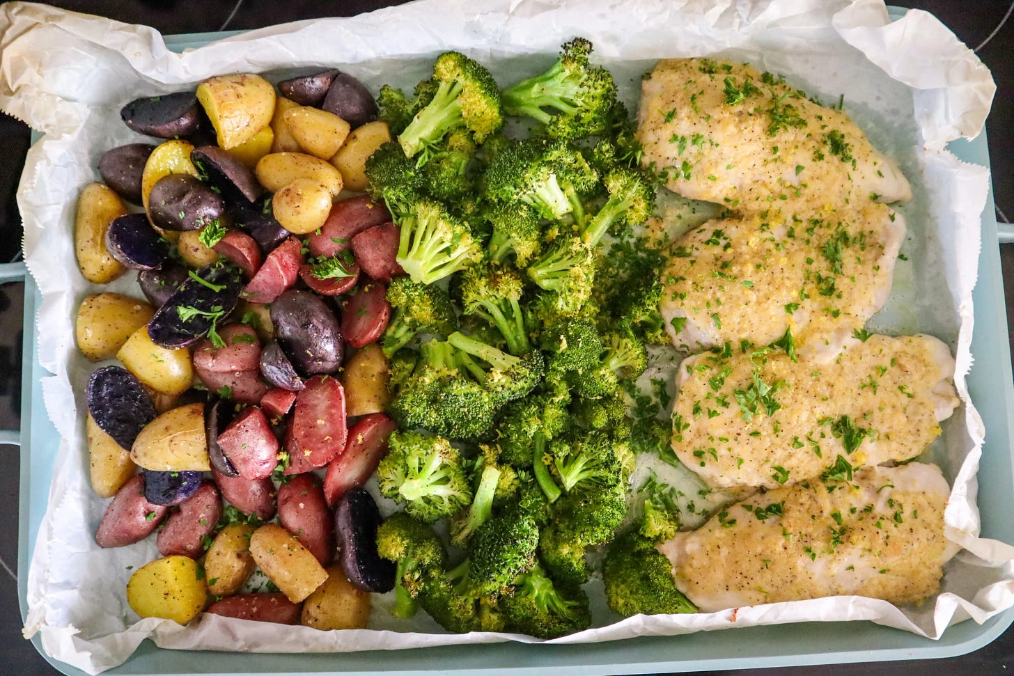 This one is a favorite for a reason. It’s simple, comforting, and great for the whole family. I usually serve it with roasted potatoes and broccoli on a sheet pan.